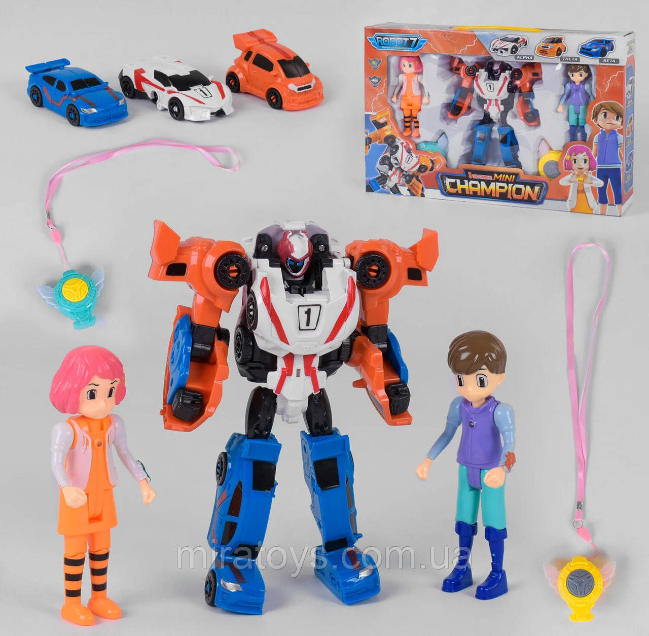 Трансформер дозволяє дитині грати відразу кілька варіантів гри! Всього за кілька кроків машина Альфа трансформується в тіло робота і з'єднується з його ногами з Машинки Бетта і руками з машинки Тета.